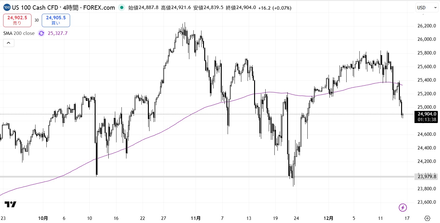 NASDAQ100が直近の安値を大きく割り込んだので