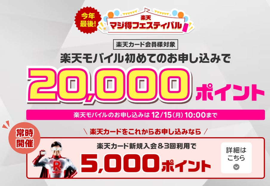 内容:楽天モバイル初申し込みで20,000ポイント
