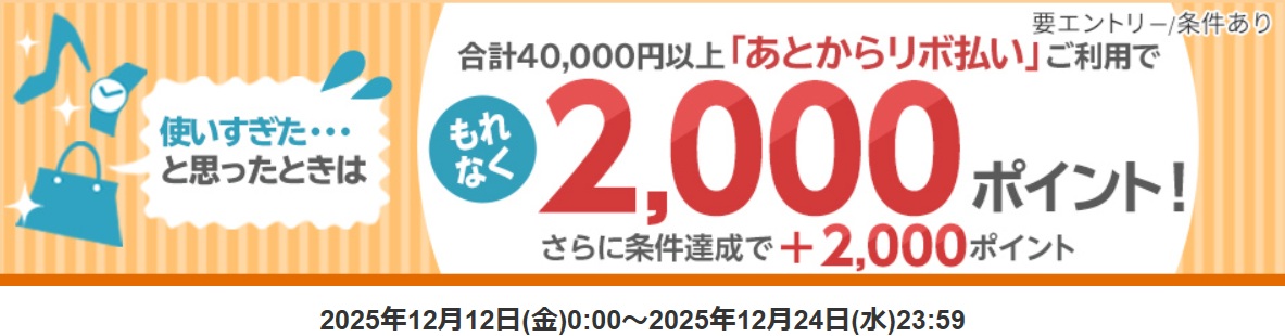 40,000円以上「あとからリボ払い」をご利用でもれなく2,000ポイント!さらに条件達成で2,000ポイント
