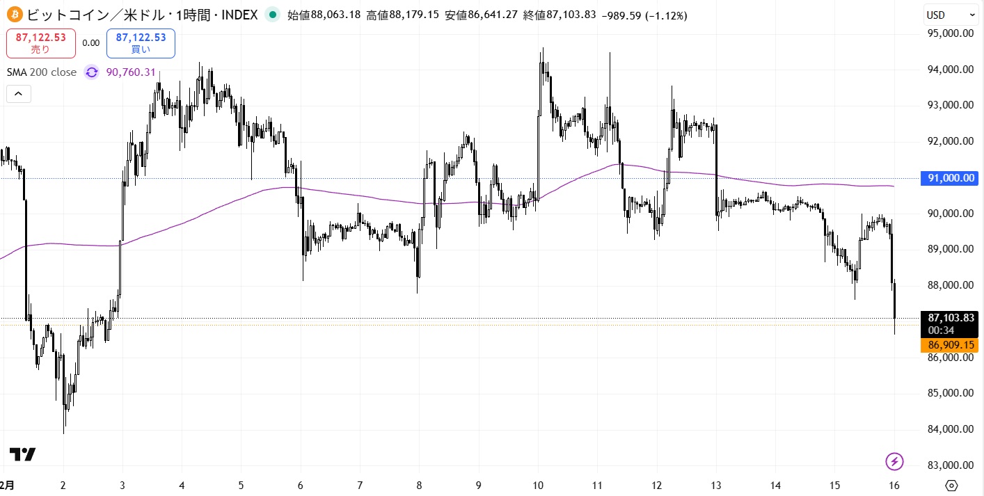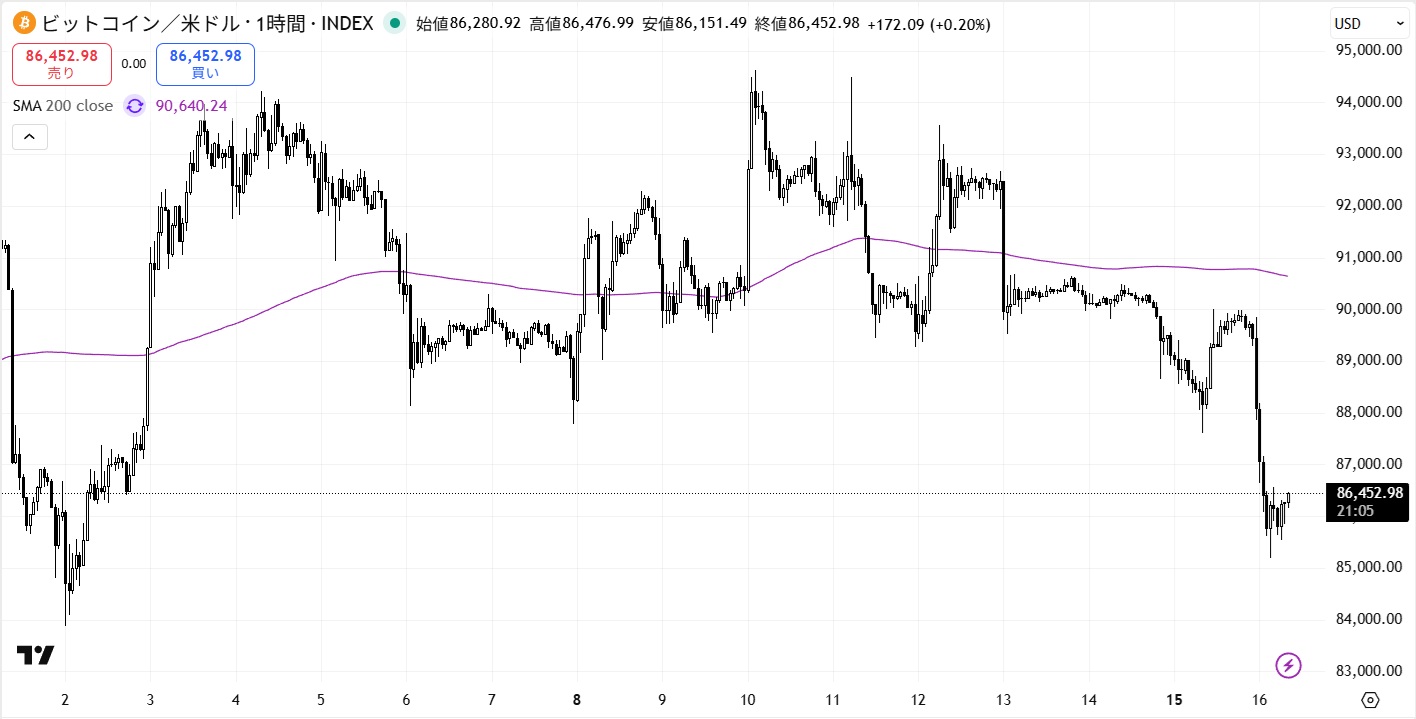 株が下がる=仮想通貨はもっと下がるということでBTCUSDにショートでエントリー。