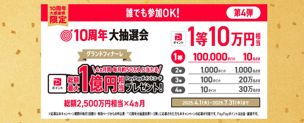 【ワイモバイル10周年大感謝祭】4ヵ月間毎月50万人に当たる!10周年大抽選会