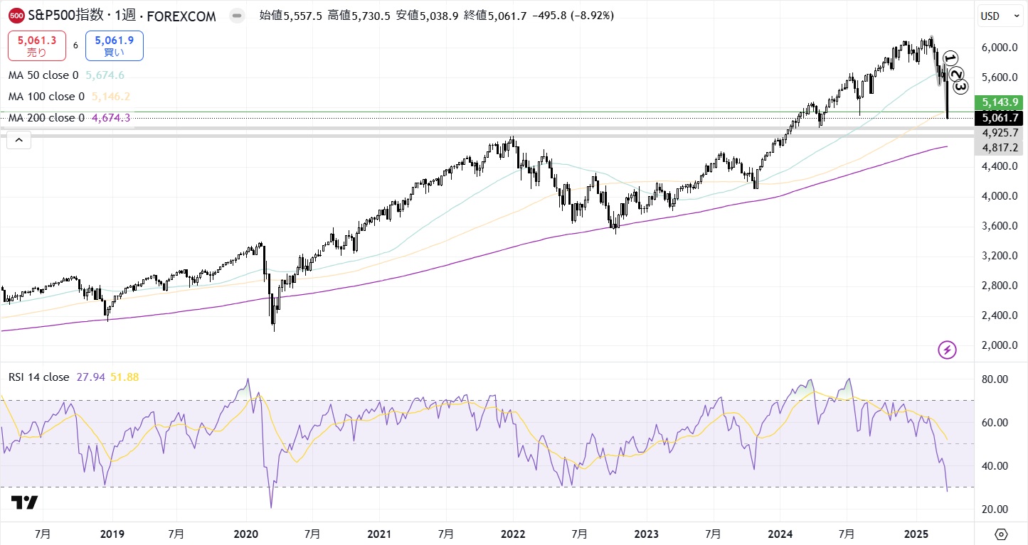 次に以下が先週末時点でのS&P500の日足チャートです。