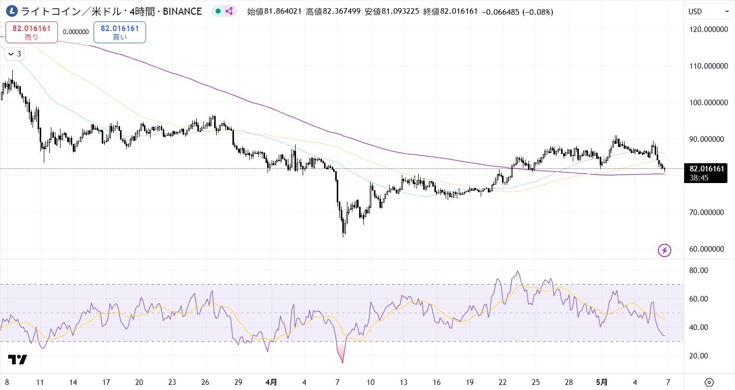 BTCUSDが直近の高値を更新、続いてLTCUSDも高値を更新したのでエントリーしました。