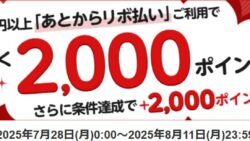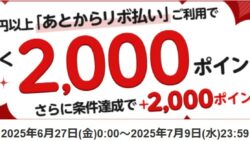 30,000円以上「あとからリボ払い」をご利用でもれなく2,000ポイント!さらに条件達成で2,000ポイント