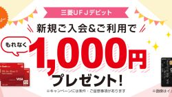 ポイ活+株・投信 【三菱UFJデビット】新規ご入会&ご利用で1,000円もれなくプレゼント!